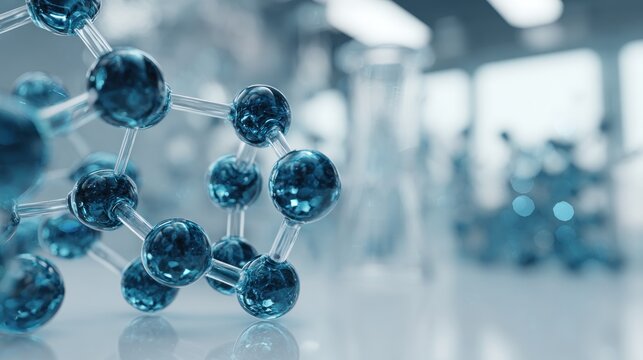 Intricate molecular structure rendering in a sterile laboratory environment