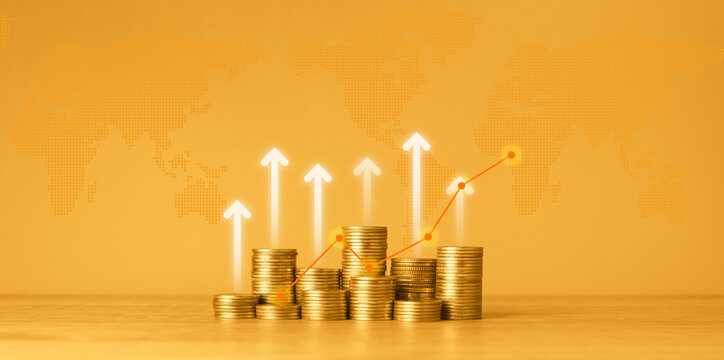 Abstract financial graph with uptrend line and arrows in stock market on blue color background