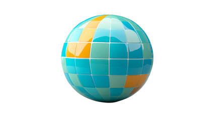 Global network connection, blue and yellow globe with digital squares representing data exchange communication