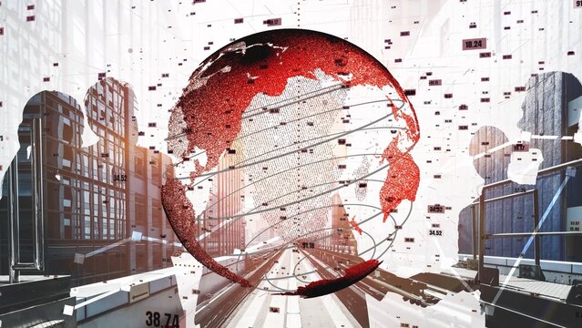 Global Data Visualization: Earth Globe, Financial Graph, and Cityscape