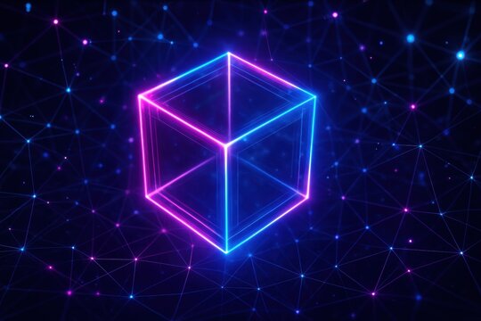Glowing digital chain links floating against a smoky background