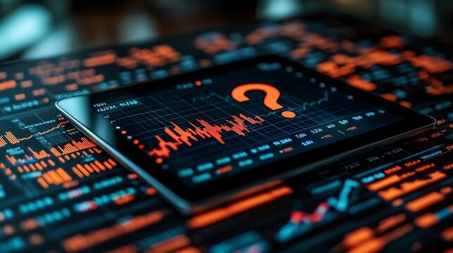 Digital Question Mark Emerging from Tablet with Financial Graphs and Market Data