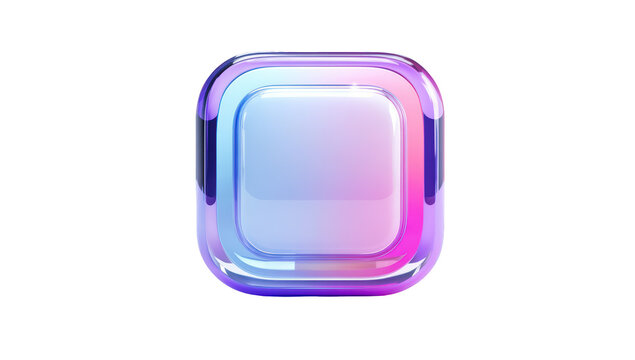Shiny, glassy, rounded-square button with a colorful gradient on a black background