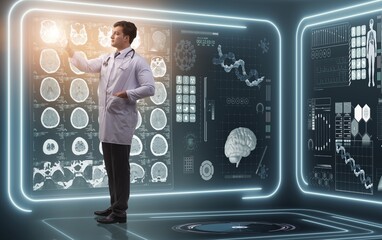 Young male doctor in futuristic medical concept