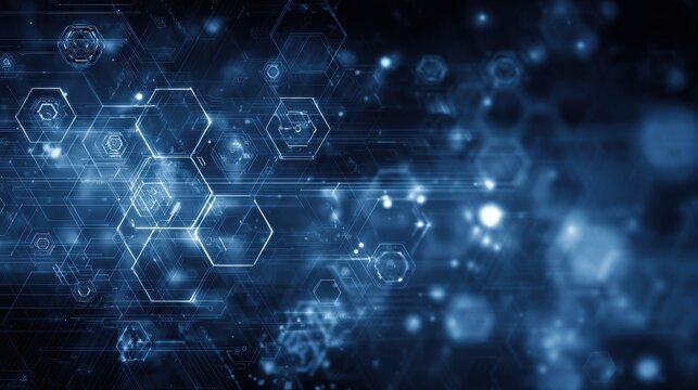 Abstract digital interface with grids and shapes on blue background