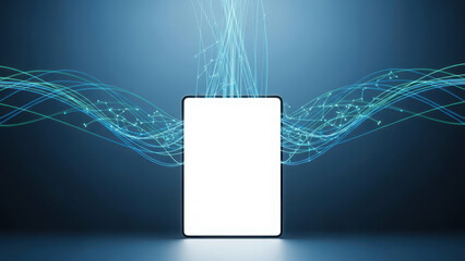 A flowing digital wave passes through a human silhouette, creating a glowing tech-inspired scene symbolizing data flow, connectivity, and the fusion of humanity with digital energy.