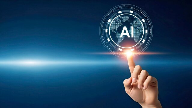 Abstract Glowing AI Icon with Human Finger Touching Light Waves in Artistic 3D Render