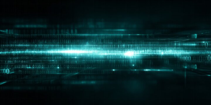 Technological graphic showcasing a network of interconnected digital elements, with glowing lines and vibrant blue and red accents set against a dark background.