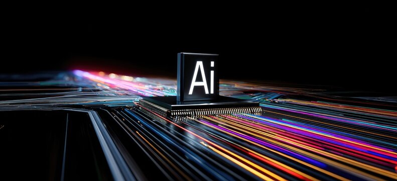 Abstract image of a circuit board with streaks of light, highlighting an AI chip