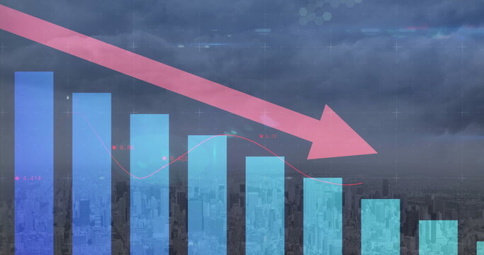 Abstract Digital Interface With Data Visualizations Over Cityscape Images