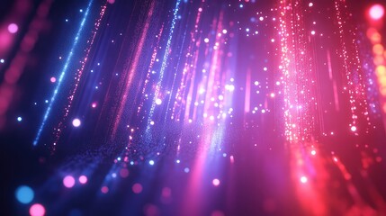 Abstract background showing glowing particles and light streams in vibrant blue, purple, and pink colors, representing data flow, advanced technology, and energy connections