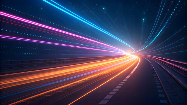 Neon Light Trails Showing High-Speed Data Flow