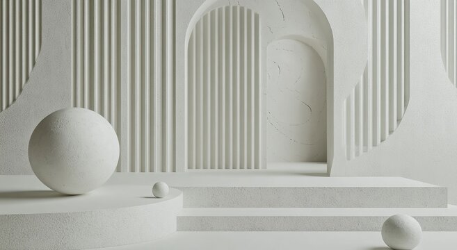Abstract White Geometric Shapes Background—Modern Minimalist Design