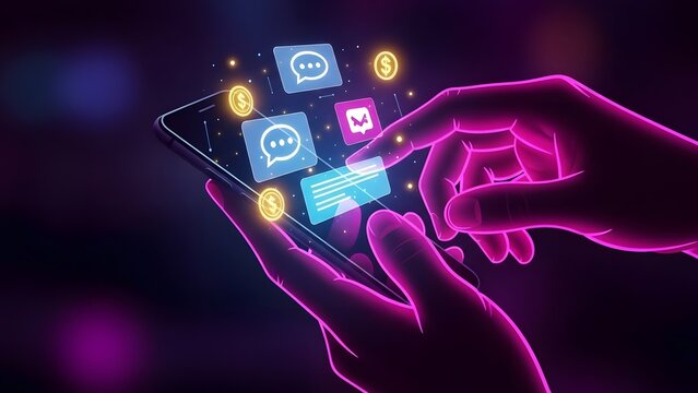 Modern smartphone with social media icons floating around it, symbolizing digital communication and online engagement