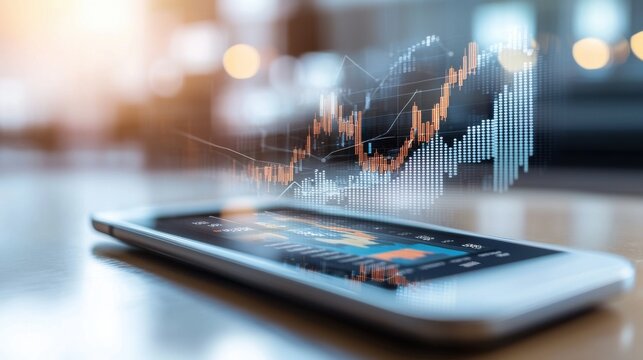 Smartphone displaying a digital financial graph with fluctuating data lines