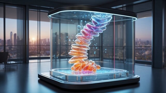 Futuristic digital interface with holographic data overlay