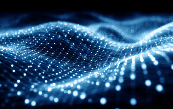 Abstract digital waves with glowing particles representing technology