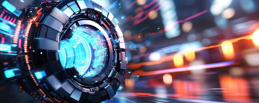 Abstract Digital Interface With Vibrant Circular Graphics Images