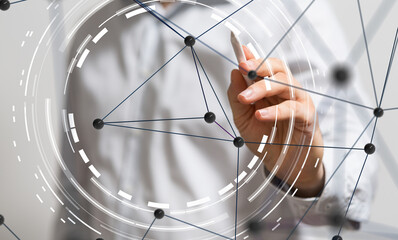 High-tech data network with futuristic scanner overlay