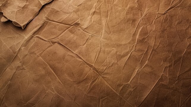 Close-up of crumpled brown paper texture. Ideal for background. Minimalist design. Generated for creative projects and digital art. Organic pattern with light brown hues. Perfect for presentations. AI