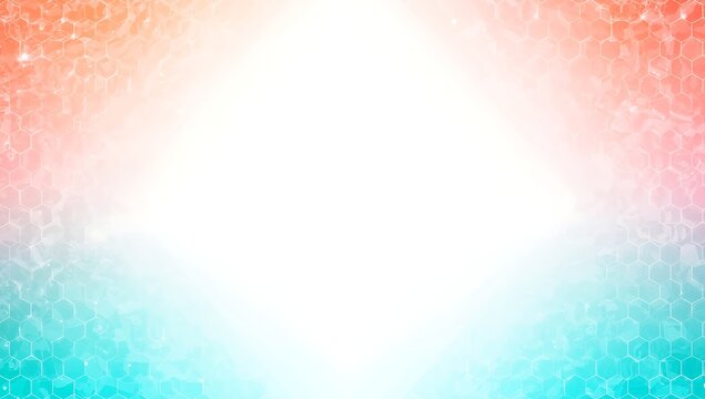 Abstract Technology Background with Teal and Peach Hexagon Patterns on White Glowing Center