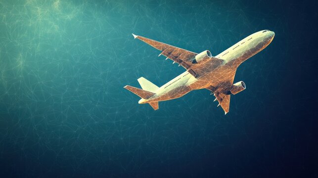 Abstract illustration featuring plexus blue geometrical shapes, representing connection and web concept, with digital communication and technology network background comprising moving lines and dots.