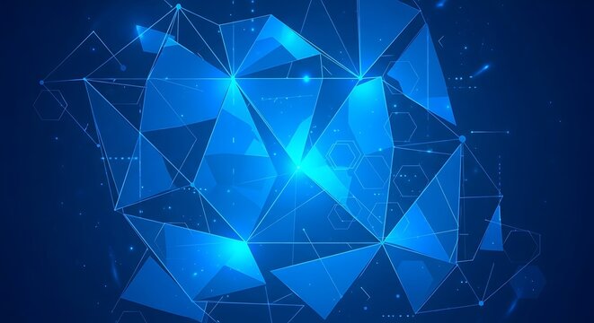 Stunning abstract background with vibrant blue geometric shapes and sparkling light effects creating a modern, dynamic feel for tech and innovation