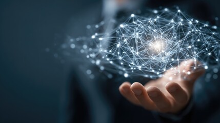 Abstract digital network glowing connections on dark background