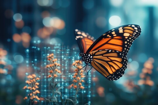 Abstract digital network overlay on urban building facade