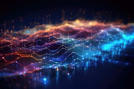 Abstract digital network with vibrant light patterns