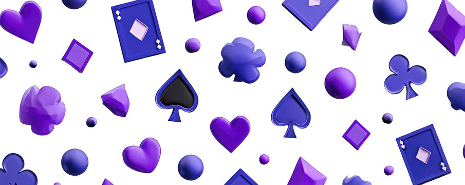A pattern of vibrant purple and blue playing card symbols on a black background