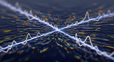 A futuristic interface displaying complex data streams and dynamic graphs with vibrant colors and gridlines