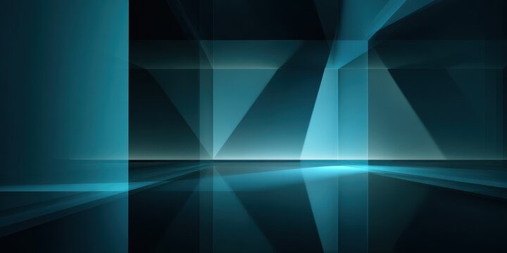 Futuristic Abstract Corporate Background with Blue Geometric Shapes and Light Beams.