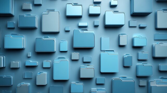 A futuristic abstract background of blue geometric shapes on a dark, reflective surface.