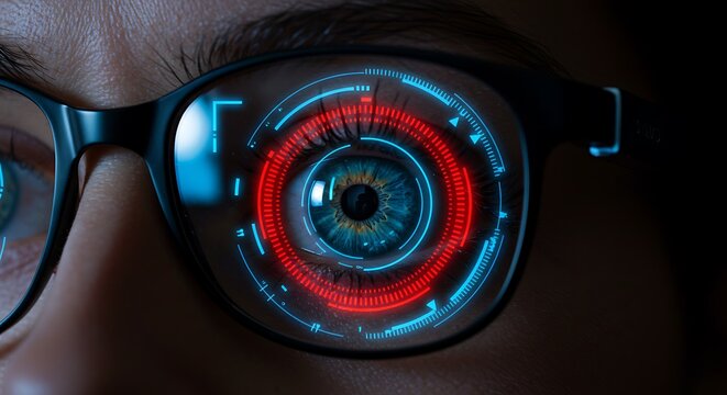 Futuristic Eye Scan Digital Interface Overlay on Human Eye