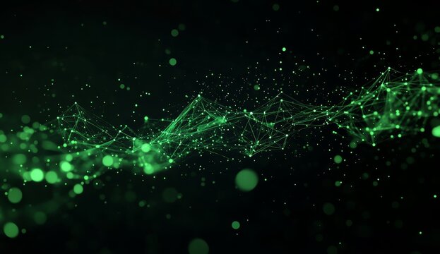 Dynamic digital wave of vibrant neon dots creating an abstract, futuristic bokeh effect, perfect for tech backgrounds and modern designs.
