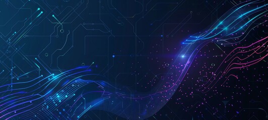 Futuristic Circuit Board Illustration with Wave Flow Design