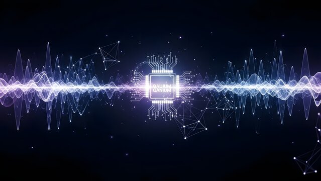 Futuristic Microchip Processing Digital Information Waves