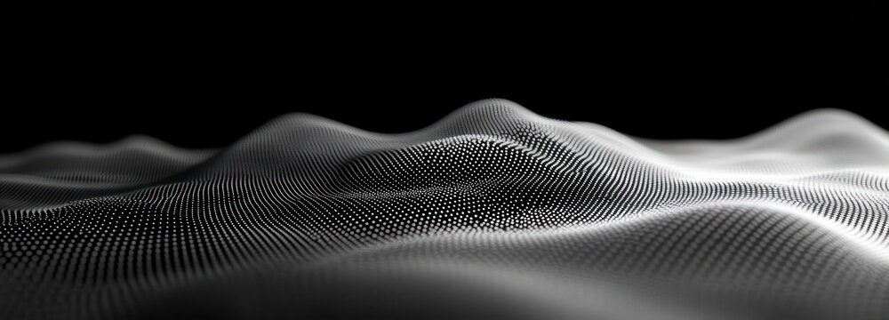 Smooth abstract landscape formed by flowing white dots on a black background creating a sense of depth and gentle movement