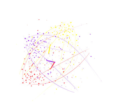 An abstract digital artwork featuring numerous thin white light trails and glowing dots emanating from a central point, creating a sense of expansion and energy