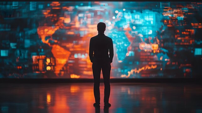 Futuristic data analytics on digital world map visualization