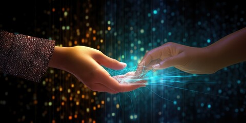 Microscopic viral entities floating in vibrant, swirling blue and orange hues with detailed spike protein structures