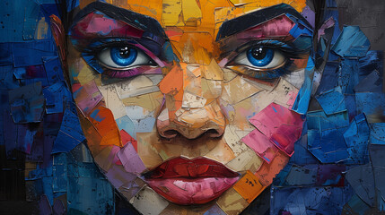 Old grunge vintage weathered background, abstract face woman with retro pattern. Art collage