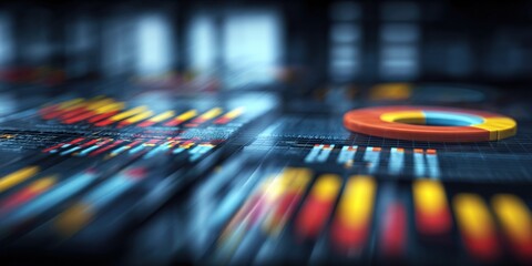 Modern financial data analysis display with vibrant color gradients showcasing market trends, growth patterns, and statistical graphics in digital format