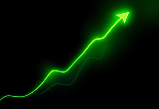 Abstract green financial trendlines ascend on a dark background,  analytics,  concept
