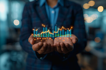Financial data graph displaying upward trend on blue abstract background