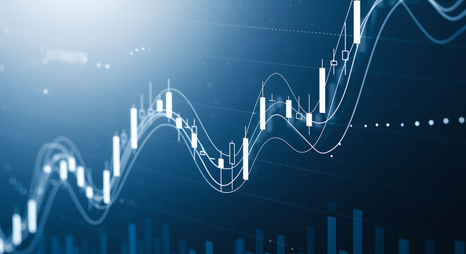 Abstract financial data display with trend lines and bar charts