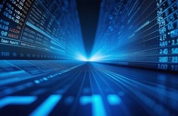 blue background on the theme of finance and currency, crypto, exchange, earnings, numbers and letters, place for text, programming, science