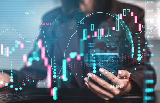 Abstract financial data with digitally enhanced graphs