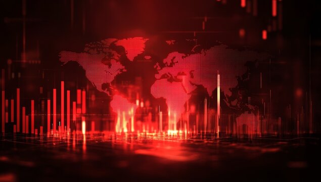 Abstract Financial Data Visualization with Red Stock Market Chart and Blue Digital Background for Business Analysis and Economic Forecasting